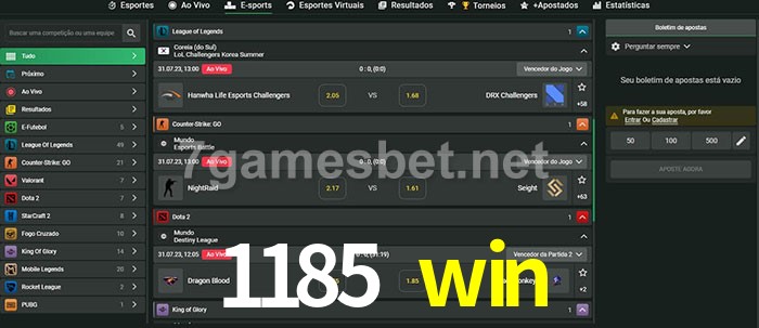 O 1185 win oferece uma grande seleção de opções de apostas em e-sports com probabilidades competitivas
